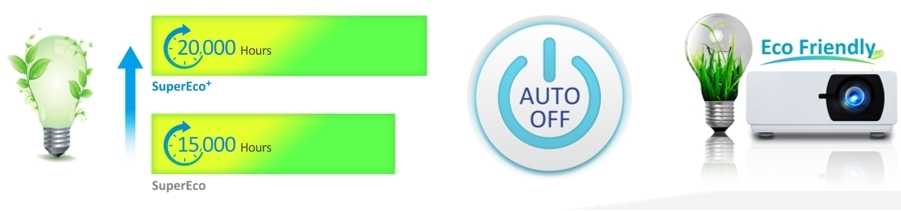 在SuperEco節(jié)能模式下,PX701-4K Pro可長效使用,其功耗及亮度將降低, 燈泡使用壽命可達(dá)20000小時,每天4小時可以使用13年,機(jī)器在偵測到無信號輸入的狀態(tài)下,會自動關(guān)機(jī)或者進(jìn)入省電模式,節(jié)約能源,同時可進(jìn)一步延長機(jī)器的使用過壽命。