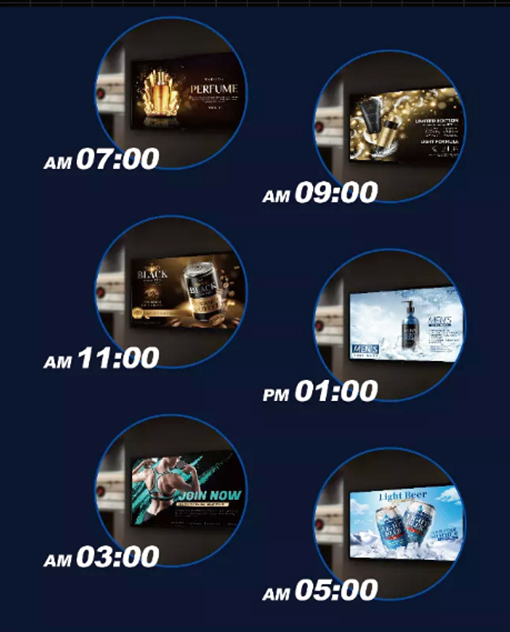 內(nèi)容推播:透過(guò)排程功能安排優(yōu)化的廣告內(nèi)容于指定時(shí)間播放, 最大化廣告墻的曝光效益。