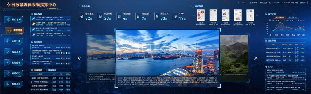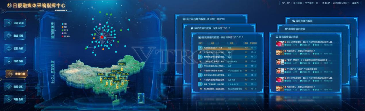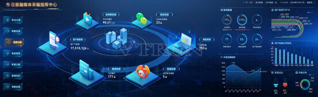 威創(chuàng)融媒體可視化解決方案專注于為用戶提供資訊匯聚、熱點分析、采編預(yù)測的可視化服務(wù),廣泛應(yīng)用于新媒體、報業(yè)等采編指揮中心,已為多家融媒體提供了高分可視化應(yīng)用服務(wù),助力用戶實現(xiàn)“一體策劃、一次采集、多種生成、多元傳播、全天滾動、全球覆蓋” 資訊采編新模式。