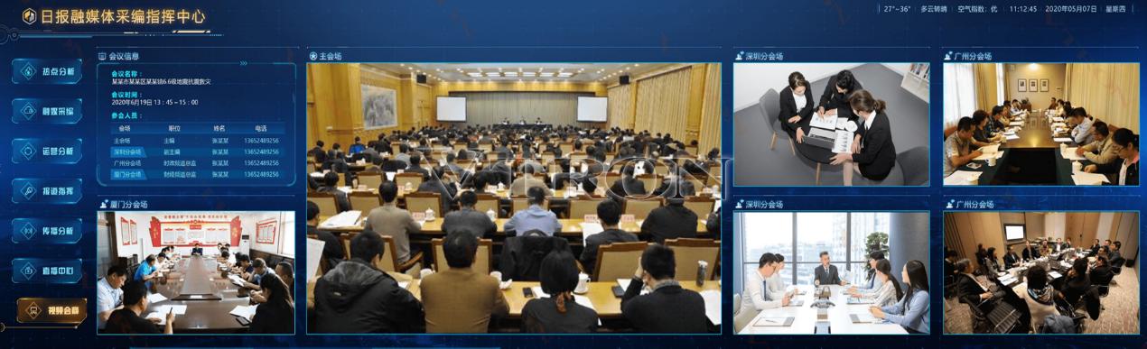 基于視頻會議系統(tǒng)及視頻監(jiān)控系統(tǒng),系統(tǒng)實時接入視頻會議、視頻監(jiān)控等信號,根據(jù)會議主題及規(guī)模按主、分會場等分區(qū)顯示會議信息,輔助采編中心進(jìn)行重大選題策劃、專題報道活動的討論與決策。