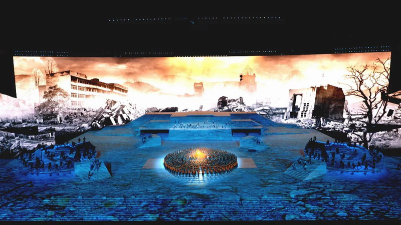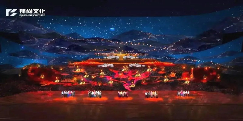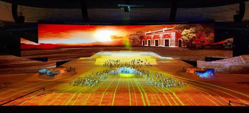 基于這一指導(dǎo)思想,導(dǎo)演組決心打造一個(gè)“全3D、沉浸式、劇場(chǎng)式”的舞臺(tái),并對(duì)投影設(shè)備效果提出硬性要求——畫(huà)面清晰,色彩飽滿,圖像線條沒(méi)有畸變,當(dāng)然整個(gè)舞臺(tái)畫(huà)面要無(wú)縫呈現(xiàn)完整畫(huà)面。
