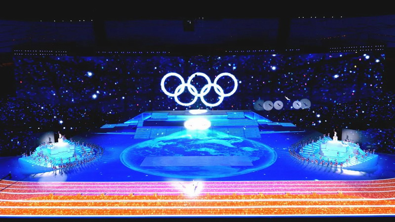 150臺(tái)投影機(jī)飽滿鋪陳國(guó)家體育場(chǎng)的巨大舞臺(tái)區(qū)域,確保流光溢彩能夠點(diǎn)亮舞臺(tái)的每個(gè)角落。投影機(jī)陣列通過(guò)畫(huà)面拼接、融合再疊加的方式,撐起整個(gè)地面及舞臺(tái)影像畫(huà)幅,在觀眾眼中呈現(xiàn)出清晰、完整且無(wú)縫的視覺(jué)效果。