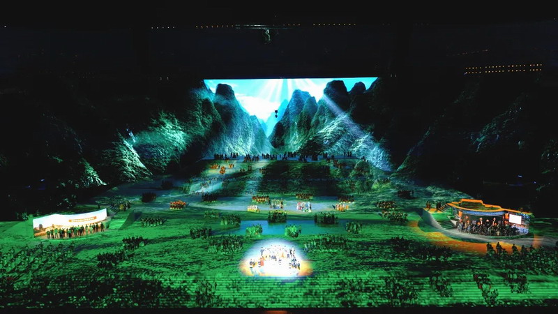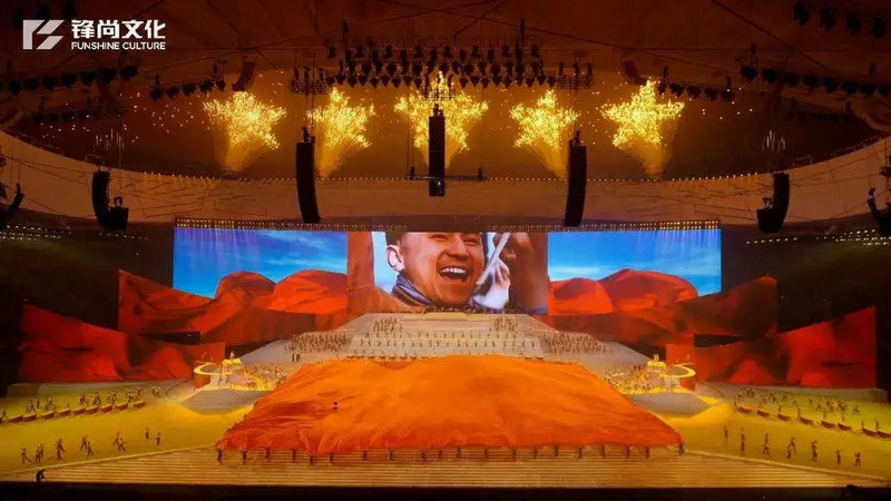 演出現(xiàn)場(chǎng),150臺(tái)巴可UDX-4K40 4萬(wàn)流明高亮激光投影機(jī)組成矩陣,震撼的投影視覺(jué)效果與高水準(zhǔn)的舞臺(tái)表演深度融合,創(chuàng)造出令人嘆為觀止的藝術(shù)效果,引領(lǐng)觀眾沉浸于激蕩心胸、大氣磅礴的精彩演出之中。