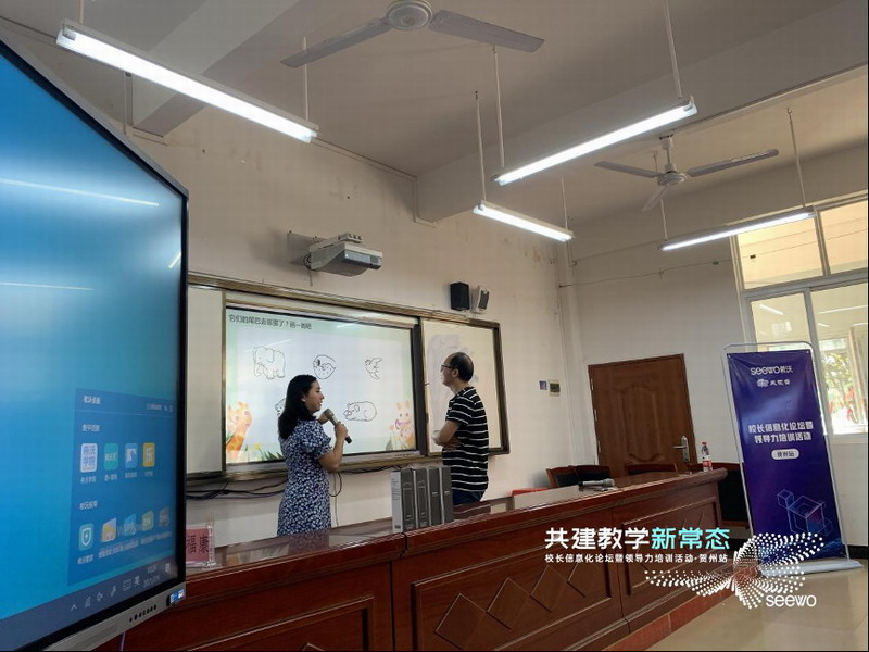 在信息化的背景下,教學環(huán)境和教學方式的改變同樣重要。之后的環(huán)節(jié),希沃教師發(fā)展中心鄧艷萍分享了交互式工具的創(chuàng)新應用,通過體驗式、案例分享的方式讓與會校長們感受和體驗到了信息技術背景下教學方式的變化,以及如何更好地利用工具為教學服務。