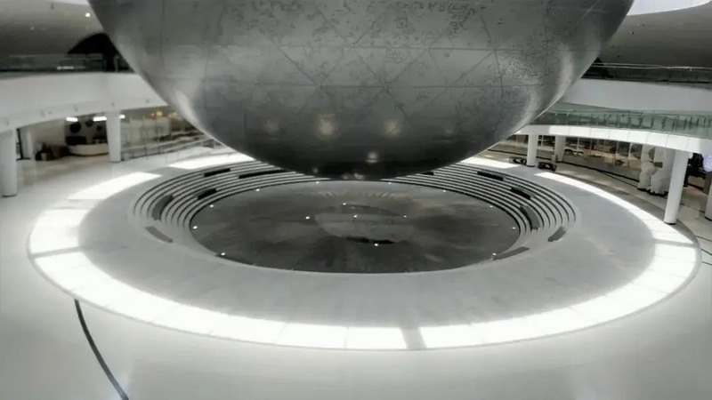 其建筑外形設計獨特,圓洞天窗、球幕影院、倒轉穹頂三個圓形元素構成太陽、地球和月亮的“三體”結構,建筑螺旋形態(tài)構成“天體運行軌道”,這不僅展現了天文學概念,而且可以真實追蹤太陽在天空中的運動,使整個建筑成為一件可以表現時間流逝的大型天文儀器。