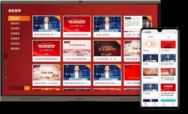 方案內(nèi)置權(quán)威而全面的課程資源,覆蓋黨史學(xué)習(xí)、重要講話、黨性修養(yǎng)、政策解讀、黨建國史、名家講堂、廉政建設(shè)等多項(xiàng)內(nèi)容,進(jìn)一步豐富紅色精神的內(nèi)核,黨員不僅可以通過黨員智慧云課堂大板現(xiàn)場學(xué)習(xí),也可以隨時(shí)隨地的通過“云課堂學(xué)習(xí)端”公眾號(hào)進(jìn)行線上學(xué)習(xí)。