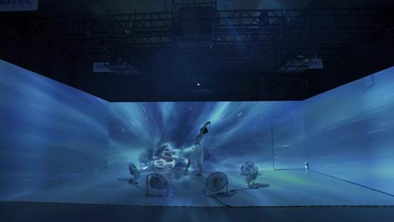 強(qiáng)大的視覺沖擊力深深震撼著現(xiàn)場(chǎng)觀眾,遙不可及的宇宙好像近在眼前,配合舞蹈演員的輕紗曼舞讓整個(gè)現(xiàn)場(chǎng)極具美感。