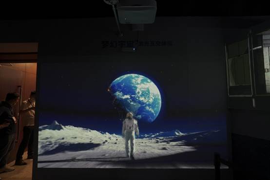 高清超短焦投影機(jī)SNP-LU500T打造激光交互體驗(yàn)效果,輕輕觸碰墻面,星球和宇航員就能與你產(chǎn)生互動(dòng)。