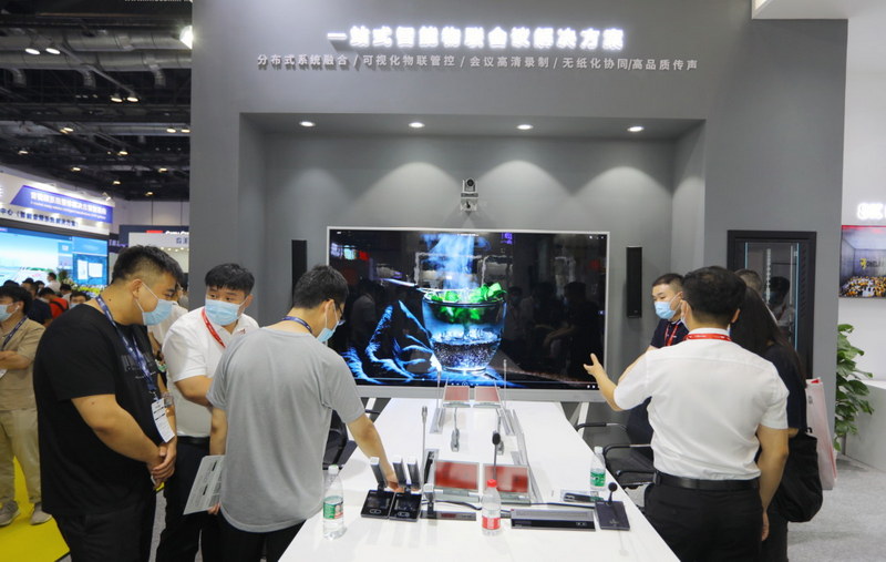 同時(shí),本次展會還帶來了一站式智能物聯(lián)會議解決方案,針對會議場景打造的沉浸式智慧體驗(yàn)。一站式智能物聯(lián)會議解決方案,包括視頻處理系統(tǒng)、顯示系統(tǒng)、音頻擴(kuò)聲系統(tǒng)、中央控制系統(tǒng)、數(shù)字會議系統(tǒng)、無紙化系統(tǒng)、可視化控制系統(tǒng)以及運(yùn)維管理系統(tǒng)。系統(tǒng)利用物聯(lián)網(wǎng)和人工智能技術(shù),將會議室設(shè)備進(jìn)行統(tǒng)一管控,形成萬物互聯(lián)的智能應(yīng)用場景,為用戶提供智能便捷的操作,提升用戶體驗(yàn)。