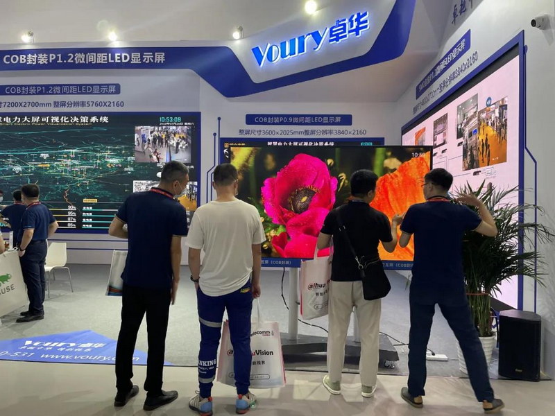Voury卓華是業(yè)界領(lǐng)先的大屏幕顯示及拼接控制整體解決方案提供商,本屆展會主打應(yīng)用場景現(xiàn)場模擬,現(xiàn)場共展出包括COB封裝LED顯示屏、SMD封裝LED顯示屏、LED智慧交互屏&LED智慧會議屏在內(nèi)的多套拼接大屏幕進(jìn)行展示。憑借自身良好口碑以及超高的人氣,在開展首日便在眾多參展商中脫穎而出,成為全場焦點(diǎn)!
