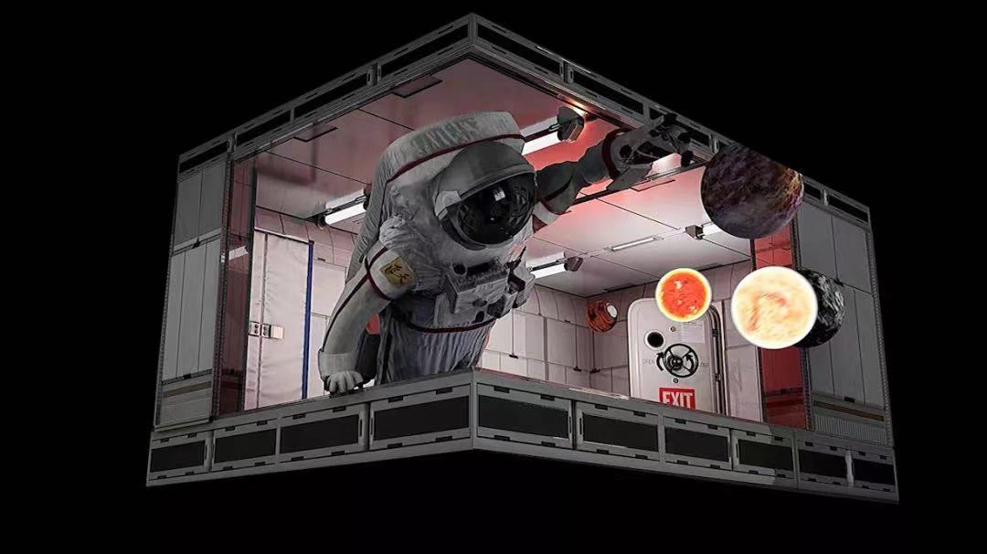 結(jié)合本次主題”為光影而生“,構(gòu)建了整個(gè)以航天為主的展區(qū),在展會(huì)現(xiàn)場(chǎng)我們可以看到整個(gè)展區(qū)圍繞著太空主題,構(gòu)建了沉浸式投影、裸眼3D、投影互動(dòng)等體驗(yàn)技術(shù),讓參展觀眾親身體驗(yàn)航天員看到的世界,滿足用戶對(duì)于宇宙星辰的渴求,同時(shí)打造航天員科幻裸眼3D展項(xiàng),航天員手中的星球沖破屏幕而出,超強(qiáng)視覺震撼感,成為infocomm展的“網(wǎng)紅打卡地”。