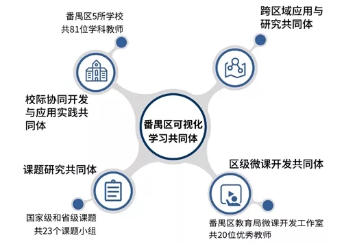 在持續(xù)開(kāi)發(fā)優(yōu)質(zhì)數(shù)字化學(xué)習(xí)資源的基礎(chǔ)上,番禺區(qū)教研室還注重利用數(shù)字化學(xué)習(xí)資源優(yōu)勢(shì)推動(dòng)課堂教學(xué)改革與創(chuàng)新。2019年,番禺區(qū)啟動(dòng)“可視化學(xué)習(xí)行動(dòng)計(jì)劃”,深入研究探索區(qū)本、校際和校本微課資源規(guī);步ā⒐蚕、共用的模式。期間,番禺區(qū)23個(gè)區(qū)級(jí)微課課題作為研究子課題獲得立項(xiàng),20名跨學(xué)校、跨學(xué)科骨干教師組建番禺區(qū)微課開(kāi)發(fā)工作室,打造區(qū)域數(shù)字化學(xué)習(xí)資源開(kāi)發(fā)與創(chuàng)作共同體。