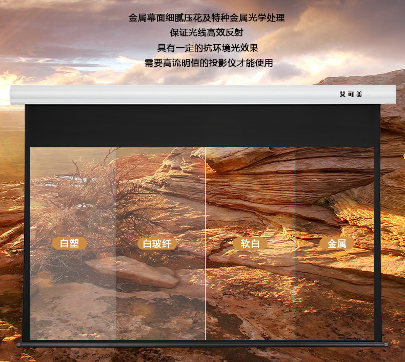 相反,如果多在黑暗的環(huán)境里觀看,可以選擇顏色較淺的幕布如傳統(tǒng)的磨砂白幕,這種材質的幕布可以更好地保持畫面的色彩精度和亮度,與灰幕相比在色彩鮮艷度方面更具優(yōu)勢。