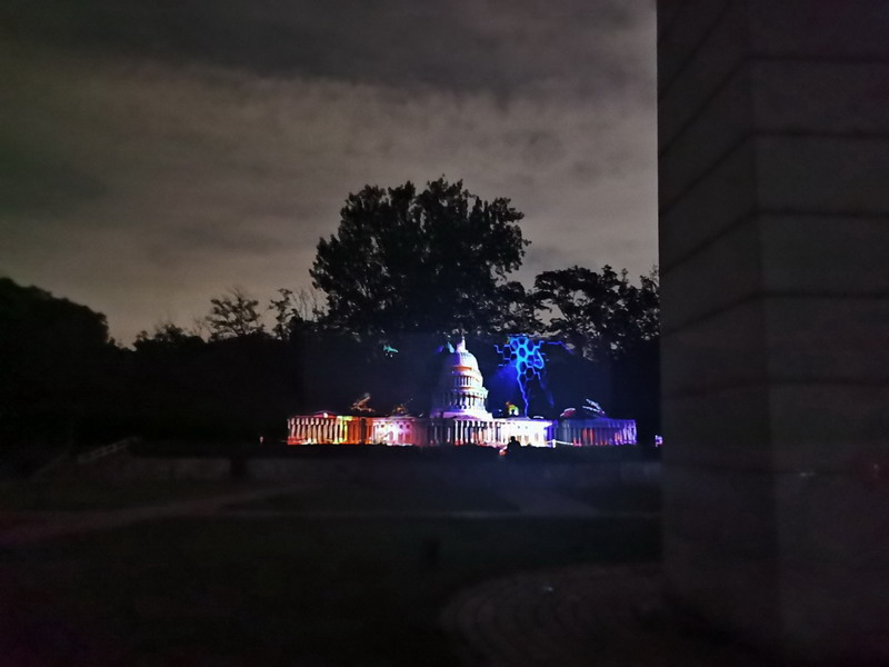 看似平靜的夜色里,2臺PT-SMZ13KCL松下工程投影機(jī)卻在動態(tài)照明的“白宮”景觀上攪起了波瀾。原來美國國會大廈上空出現(xiàn)了不明飛行物,明亮的電光閃爍之間,風(fēng)云突變,奇幻異常。面對未知的侵入,驕傲的“白頭鷹”又會采取怎樣的行動?驚險(xiǎn)刺激的故事就此展開。