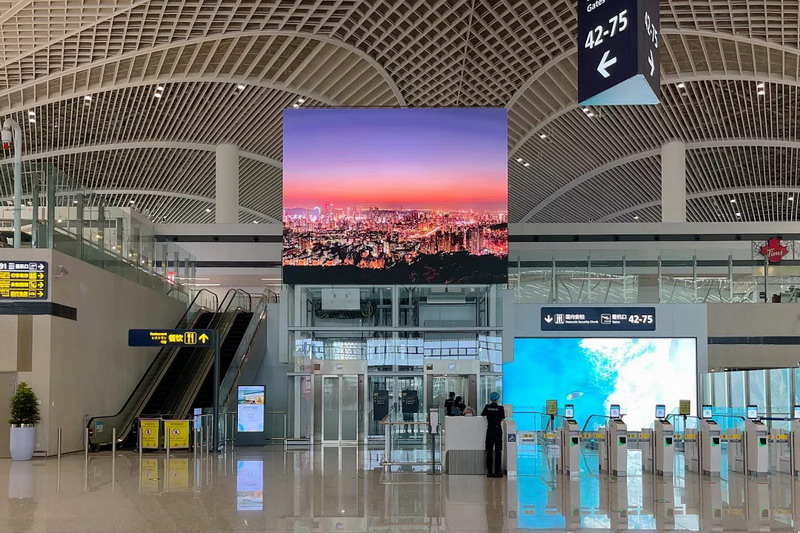 高清靚麗顯示大屏成為旅客注目的焦點(diǎn)。這兩塊大屏應(yīng)用了行業(yè)領(lǐng)先的8K控制