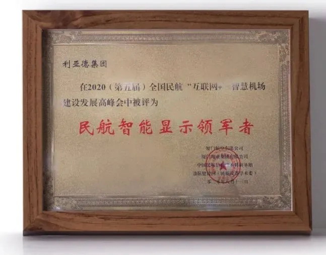 2020年,利亞德被授予“民航智能顯示領(lǐng)軍者”榮譽(yù)稱號(hào)