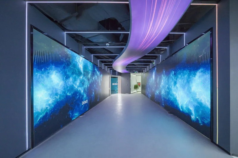 作為甘肅省首個5G聯(lián)合創(chuàng)新中心展廳,本項目影響力深遠。艾比森經(jīng)銷商海思科技在艾比森湖北運營中心銷售團隊的全力支持下,進行了長達兩個月的項目設(shè)計與研討,克服種種困難,反復(fù)優(yōu)化方案,并通過精細施工作業(yè),保證了卓越的顯示效果和超高的工藝水平,實現(xiàn)了整體項目的未來感、科技感以及沉浸式效果的要求,得到了甘肅省蘭州市相關(guān)領(lǐng)導(dǎo)的一致認可。