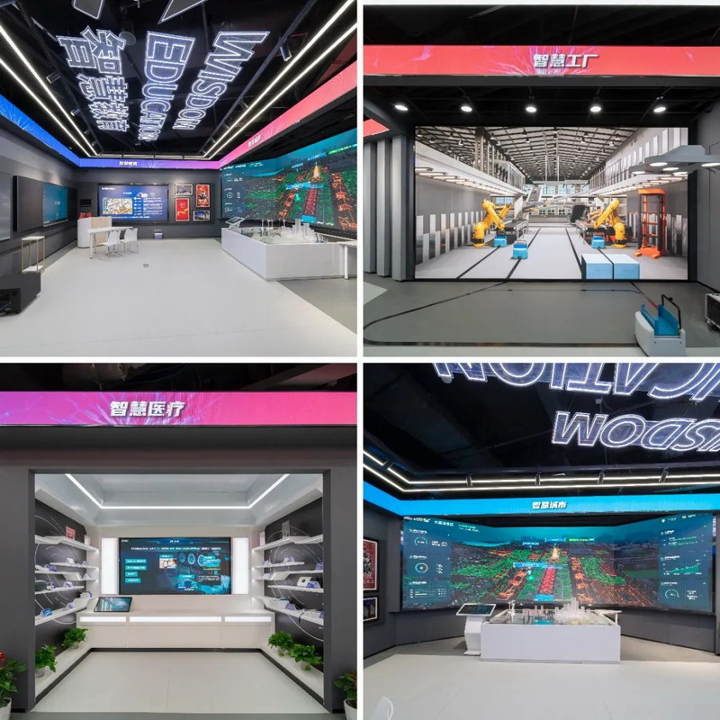 甘肅5G聯(lián)合創(chuàng)新中心結(jié)合不同場景及主題,致力于打造成多元產(chǎn)業(yè)生態(tài)的多功能“百變展廳”,總面積約1500㎡,劃分為3個大區(qū)、11個區(qū)位,聚焦5G、大數(shù)據(jù)、區(qū)塊鏈等技術(shù)在教育、生活、政務(wù)、醫(yī)療、工業(yè)等領(lǐng)域深度運用的最新成果,展示未來社會、未來家庭、未來工作場景。