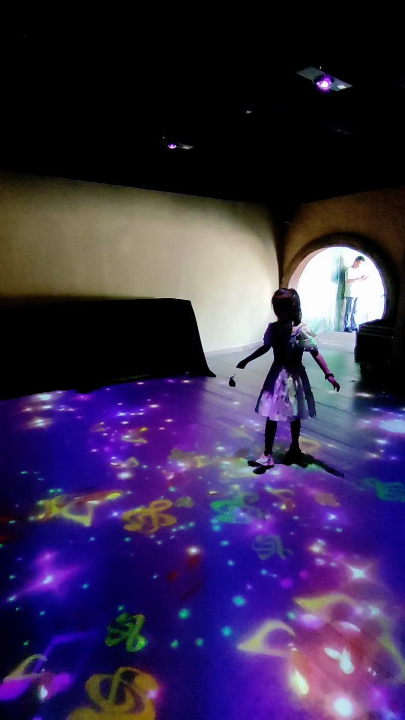“奇幻空間”項目是位于露臺的一個休息空間,在這個空間內(nèi),園區(qū)同樣花了心思進行布置,為了讓休息的人們也能體驗到樂趣,“奇幻空間”的地面上通過投影的形式打造了一個有趣的互動項目,當(dāng)人們進入空間,腳踏著地面上的閃閃星光時,一個個美妙的圖案從腳底綻開,妙趣橫生,這個精巧又不失浪漫的空間消解了游客一身的疲憊。