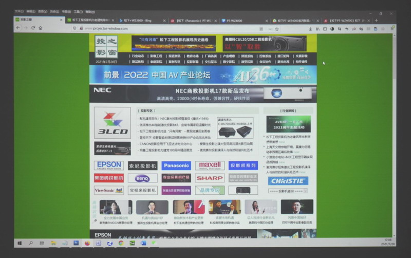 從投影畫面夠明顯的感覺到在標準會議室環(huán)境下,它實現(xiàn)了“無懼強光”的視覺質感。測試圖能清晰呈現(xiàn)層次,畫面細膩程度令人滿意。