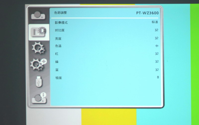 松下PT-WZ3600畫面校正功能強大,不僅支持常規(guī)的水平/垂直梯形校正,還能夠針對投影畫面四角進行單獨的微調,“箭頭”顏色變化提示已改變或原始狀態(tài)。并且,用戶有豐富的可選影像模式,包括黑板模式等,用戶還可根據(jù)需求進行三色微調。