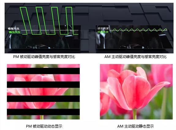 在AM(Active Matrix)主動(dòng)驅(qū)動(dòng)方式下,所有燈珠都能保持常亮,且亮度均勻,不再高頻閃爍,不再有超過(guò)感官可接受亮度數(shù)十倍的峰值亮度,顯示柔和,觀看舒適,從而在根源上徹底解決了傳統(tǒng)小間距LED顯示屏長(zhǎng)時(shí)間、近距離觀看刺眼不舒適的痛點(diǎn)。