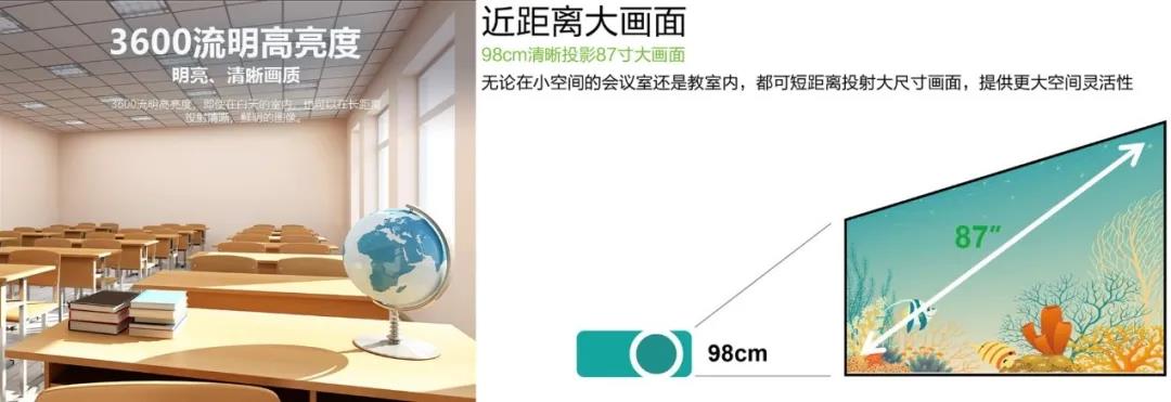 T421D商用短焦投影機擁有3600流明高亮度以及20,000:1的高對比度。同時通過Extreme Eco節(jié)能技術可節(jié)省70%的功耗,延長燈泡壽命至10000小時。高壽命、低維護成本和24分貝低噪音的優(yōu)勢,能夠為長時間劇本殺游戲保駕護航。