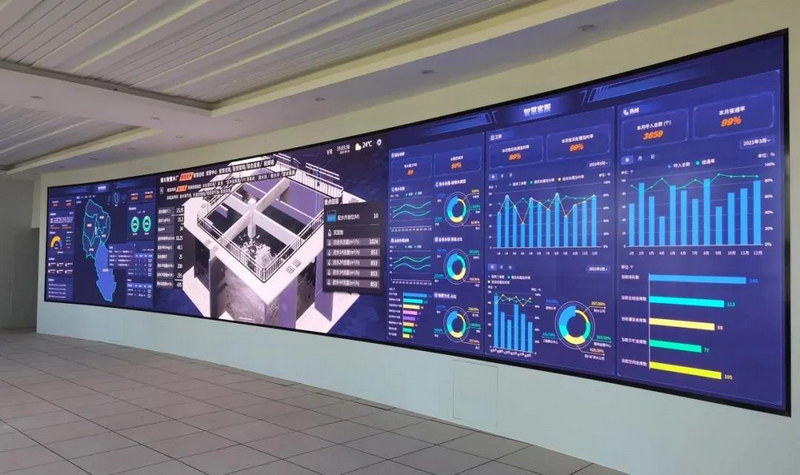 通過項目指揮中心的洲明UMini大屏,我們可以一目了然的對水庫運營、制水運營、管網(wǎng)運營、供水服務(wù)、水質(zhì)管理等信息進(jìn)行可視化管理,并通過與市政、水務(wù)等部門的互聯(lián)互通,實現(xiàn)生產(chǎn)、調(diào)度、服務(wù)監(jiān)管的全業(yè)務(wù)流精細(xì)化管理。
