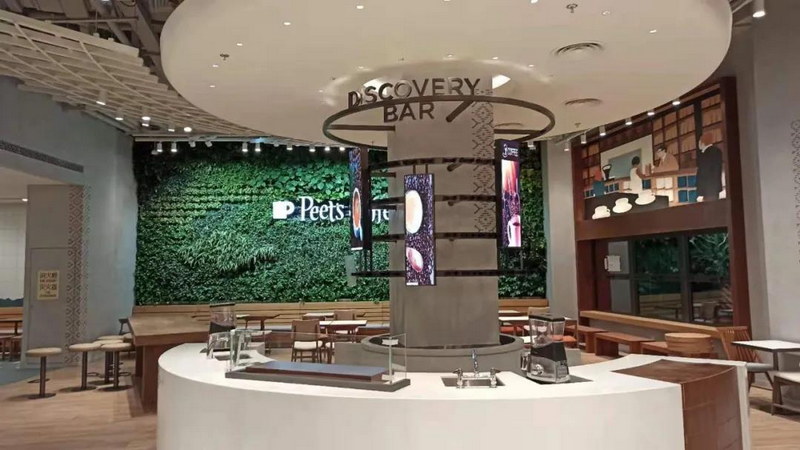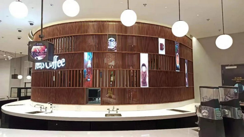 利亞德為皮爺咖啡量身打造不同規(guī)格的展示屏,在滿足功能的基礎(chǔ)上打造時(shí)尚優(yōu)雅的環(huán)境氛圍。
