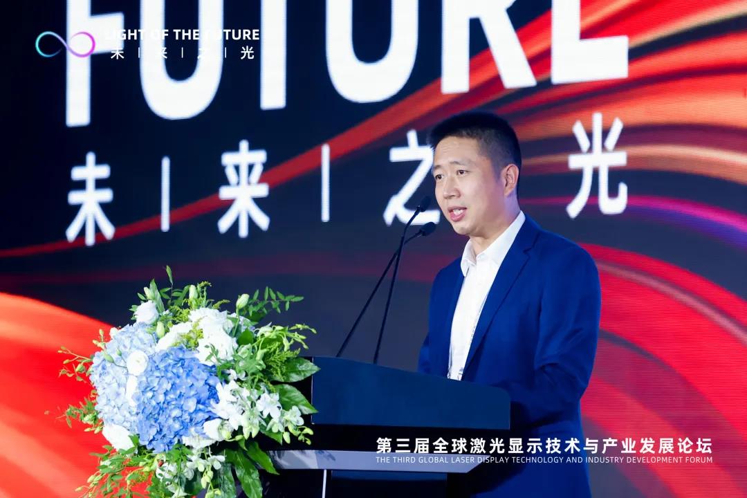 長虹激光顯示科技公司總經(jīng)理李先平發(fā)表題為“激光筑夢,照亮未來”的主題演講。