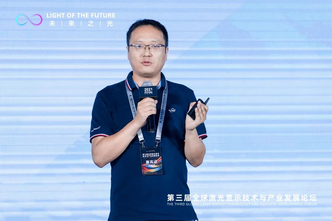 論壇現(xiàn)場,光峰科技產(chǎn)品中心總監(jiān)張賢鵬博士發(fā)表題為《激光顯示,無處不可,無時不可》的主旨演講,從“激光顯示正當(dāng)時”、“依托技術(shù)持續(xù)創(chuàng)新”、“創(chuàng)造價值以人為本”、“行業(yè)合作共贏未來”四個方面做了分享。
