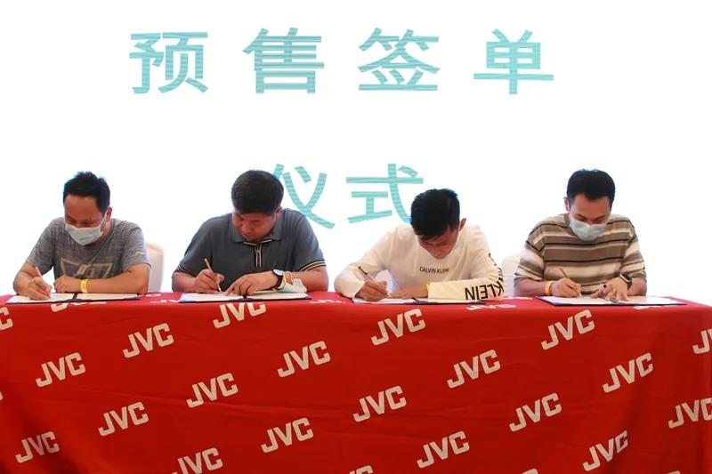 充滿青春活力的日系風(fēng)格舞蹈表演秀將發(fā)布會(huì)帶入了高潮,宮木正次先生拉開了新品展示的帷幕,模特與新品齊亮相。發(fā)布會(huì)還精心安排了一個(gè)帶有濃郁日本傳統(tǒng)文化特色的環(huán)節(jié)“達(dá)摩開眼”,由JVC中國區(qū)總經(jīng)理宮木正次先生、總代理上海麗景信息技術(shù)有限公司(麗景多媒體)總經(jīng)理黃鵬飛先生和經(jīng)銷商代表東莞市瑪田研通影音設(shè)備有限公司總經(jīng)理陳立強(qiáng)先生共同為達(dá)摩左眼點(diǎn)睛,共同祈福許愿開運(yùn)“千客萬來、一致團(tuán)結(jié)、目標(biāo)必達(dá)”!而后,黃鵬飛先生還和經(jīng)銷商伙伴舉行了預(yù)售簽單儀式,未來可期。