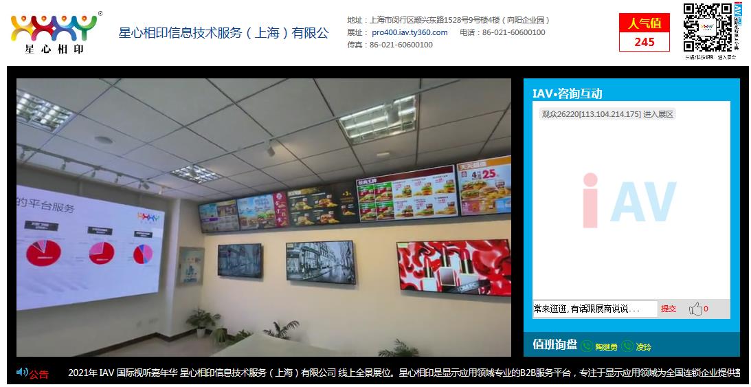 在新媒體時代環(huán)境下, 品牌塑造及升級在內(nèi)容傳遞、傳播方式等方面都實現(xiàn)了雙向互動的變化。星心相印順應時代變化,積極探索“線上會展”模式,借力“互聯(lián)網(wǎng)+”大數(shù)據(jù),共享創(chuàng)新發(fā)展戰(zhàn)略。“聚力新視聽,創(chuàng)意新文化”一起攜手共贏、共創(chuàng)視聽客戶新體驗!