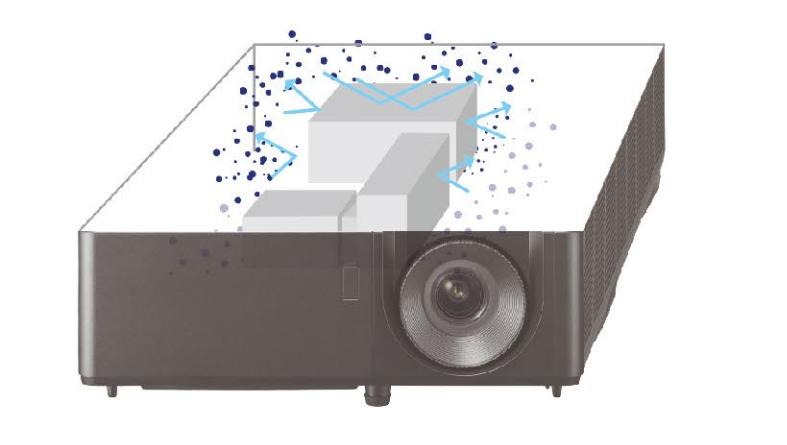 灰塵是影響投影機(jī)壽命的關(guān)鍵因素,投影機(jī)防塵濾網(wǎng)進(jìn)行一重過濾后仍會(huì)有部分殘留,而PJ RX2208L/RW2208L/RHD2208L的全密閉光機(jī)通過IP6X防塵等級(jí)測(cè)試,灰塵無法進(jìn)入激光光源和光學(xué)引擎,可以有效消除因?yàn)榛覊m所導(dǎo)致的圖像斑點(diǎn)、亮度衰退,投影機(jī)壽命衰退等問題,進(jìn)行二重保護(hù),顯著降低后期維護(hù)和耗材成本。