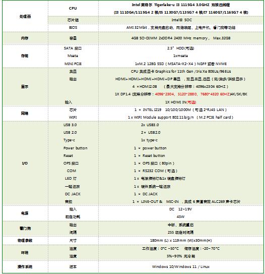 OPS電腦:Baytrail-J1800/J1900/Baytrail-CR Z8350/GeminiLake-N4000/N4100/J4105/J4005 CPU/HM76+2-3 代CPU/HM86+4代CPU/Skylake-u+6-7 代CPU/Whiskeylake-u+8-10代CPU/tigerlake-u+11代CPU(最新支持5K顯示或者8K分辨率顯示OPS電腦方案)。