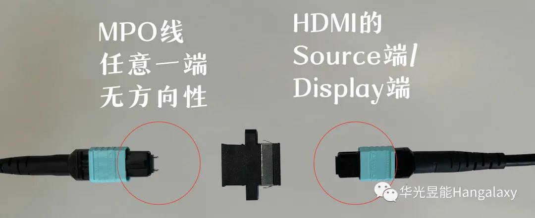 MPO布線時無須考慮方向性,如果HDMI光纖線的TX端和RX端對接方向弄錯了,只要把MPO連接器從適配器拔出,重新調(diào)換TX/RX位置,再接插即可。