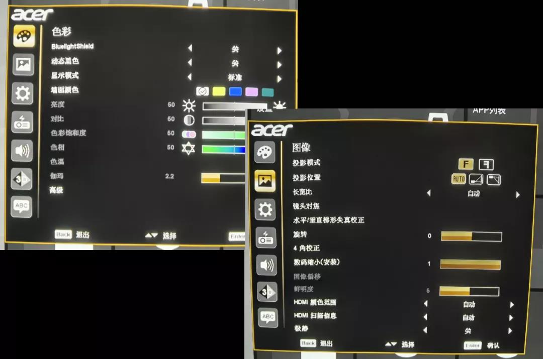 在設(shè)置界面,我們可以對(duì)畫面進(jìn)行水平/垂直梯形校正以及四角校正。為了方便直接投屏上墻的用戶,Acer L811可以選擇投身墻面顏色以提升對(duì)應(yīng)色彩的增益,讓影像畫面的表現(xiàn)更加優(yōu)秀。L811自帶Acer的ColorSafeII、LumiSense內(nèi)容感知調(diào)節(jié)技術(shù)以及色彩保真技術(shù),動(dòng)態(tài)優(yōu)化畫質(zhì)體驗(yàn),不丟失黑暗場(chǎng)景中的細(xì)節(jié)。