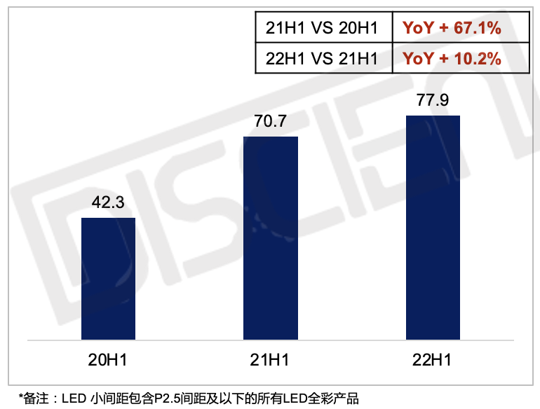 根據(jù)DISCIEN(迪顯)《中國LED小間距市場研究報告》統(tǒng)計,2022年上半年中國LED小間距銷額為78億元,同比增長10.2%,相較于去年增速有所放緩,主要原因為: