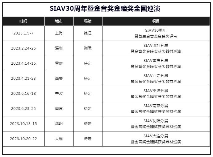 SIAV 30周年暨首屆金音獎(jiǎng)金瞳獎(jiǎng)評(píng)審大會(huì)將于1月5-7日,在上海錦江飯店和新錦江大酒店恭候大駕。