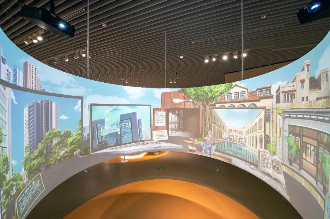 順展線前行,又到了一處弧形大幕,上海市民的15分鐘社區(qū)生活在這里上演。公園綠地、城市書(shū)房、體育場(chǎng)館,松下PT-FRZ120C工程投影機(jī)的高色準(zhǔn)雙驅(qū)動(dòng)固態(tài)激光光源和強(qiáng)光補(bǔ)正功能,細(xì)膩精準(zhǔn)還原真實(shí)場(chǎng)景,搭配弧形大幕帶來(lái)的強(qiáng)烈臨場(chǎng)感,在高樓大廈和弄堂小巷之間穿梭,不覺(jué)被上海生活的幸福感所感染。