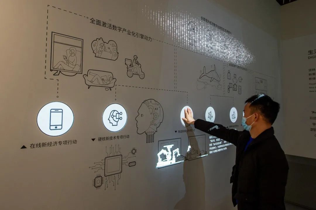 展項(xiàng)還配置了動(dòng)作捕捉設(shè)備,觀眾在墻面的交互點(diǎn)上輕觸,光順著線路延伸,喚醒關(guān)鍵點(diǎn),帶來(lái)萬(wàn)物皆可觸的交互新體驗(yàn)。
