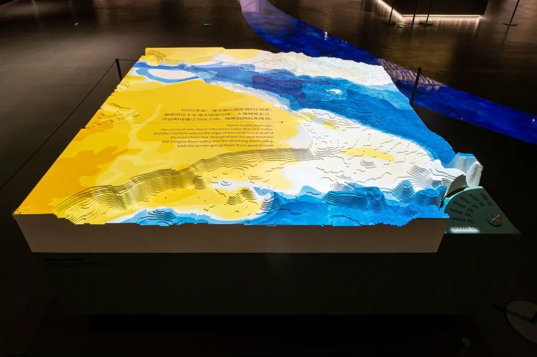 高低錯(cuò)落的“地勢(shì)圖”上,只需撥動(dòng)一個(gè)按鈕,兩臺(tái)松下PT-FRZ120C隨即投射出純正的紅、綠、藍(lán)、黃光線。2000年前、4000年前,乃至2萬(wàn)年前,長(zhǎng)江河口的演變情況盡收眼底,直觀地展現(xiàn)上海的成陸過(guò)程。