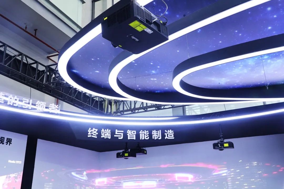 終端與智能制造展示區(qū)全部使用華錄激光工程投影機(jī),打造了多個(gè)精彩展項(xiàng)。吸引大批觀眾駐足觀看。