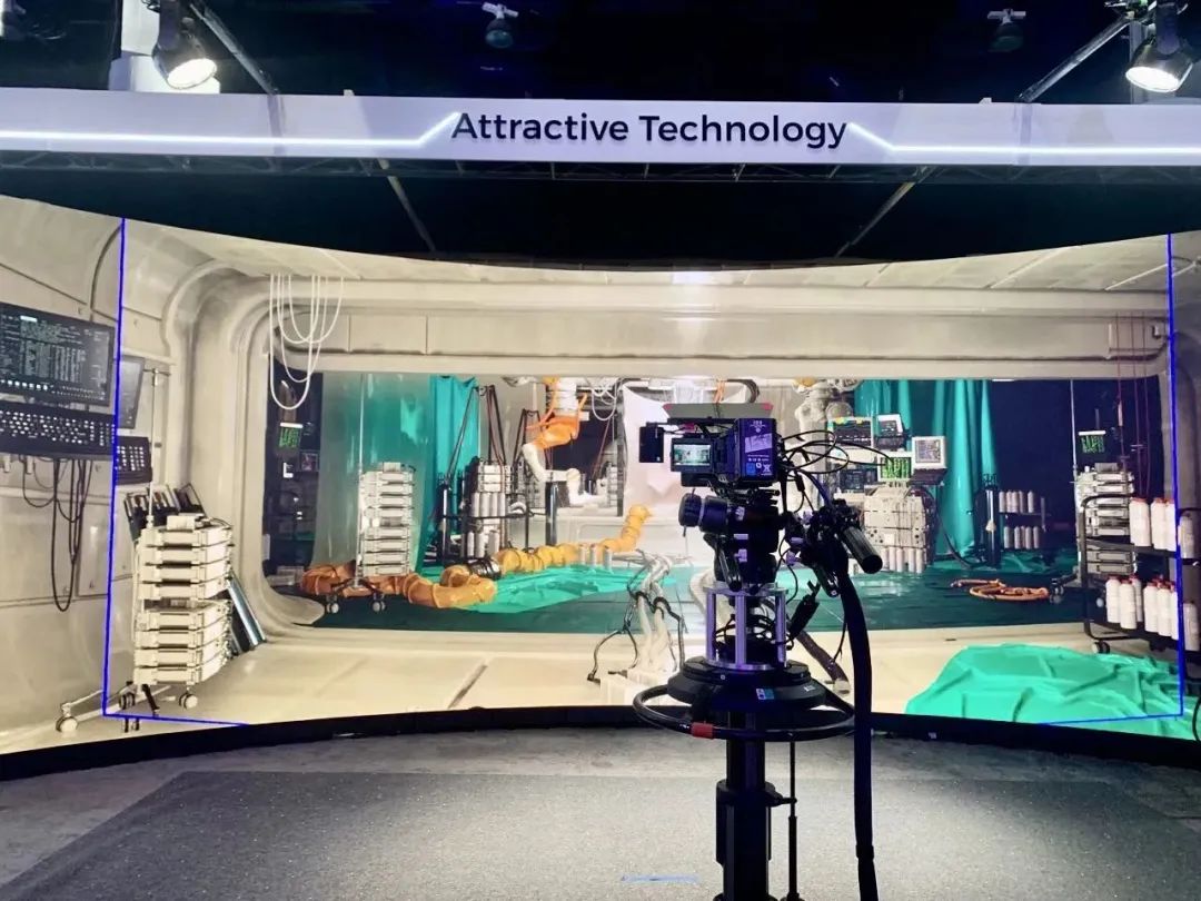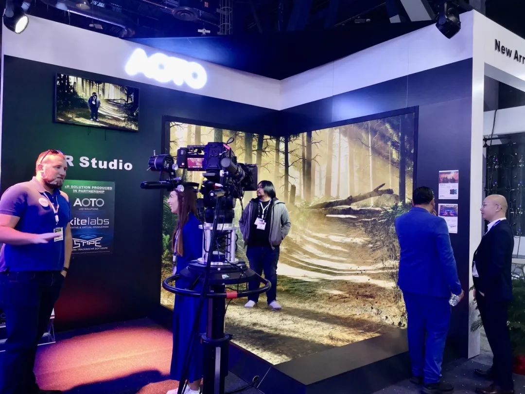 展會現(xiàn)場,奧拓電子的XR虛擬拍攝影棚和小型Meta box三維數(shù)字直播間尤為引人注目。2022年,奧拓電子在虛擬拍攝領域持續(xù)發(fā)力,以高清LED顯示屏為載體,融合虛擬引擎、3D渲染、攝像機追蹤、數(shù)字內容資產(chǎn)等,為客戶提供全流程解決方案,可應用于電視電影廣告拍攝、演唱會音樂會直播、短視頻制作等場景。奧拓電子LED虛擬解決方案可以實時生成沉浸式拍攝空間,可實現(xiàn)畫面任意切換,角度任意調整、光影特效任意插入,所見即所得。XR直播間還可以利用畫面延展技術將畫面擴展到LED大屏意外的區(qū)域,擴展出無限延伸的虛擬空間。此次展出的XR虛擬影棚使用了全新系列的LED顯示屏包括背景墻RM2.3、RM2.3E以及地磚屏AE2.3,同時配備了攝像機、追蹤系統(tǒng)等設備,讓參觀者身臨其境體驗虛擬拍攝的全流程。
