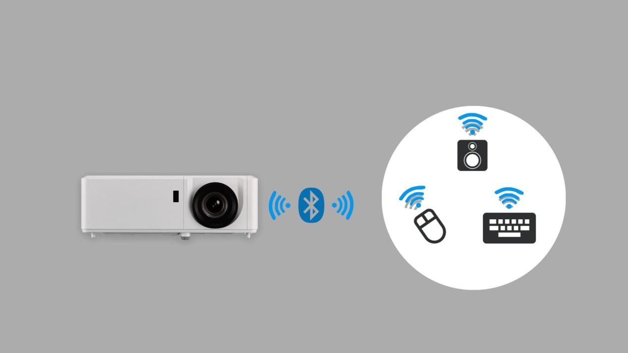 PJ LU300N支持藍(lán)牙連接,能夠迅速連接外部音響。放映場(chǎng)景如需更大音量和更高音質(zhì)的支持,也可以輕松滿足音效方面的需求。