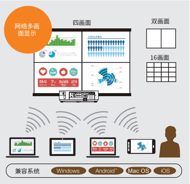 MultiPresenter軟件支持多系統(tǒng)平臺混用,最多十六畫面同時顯示