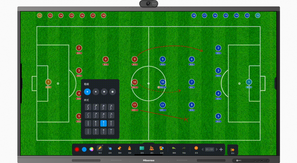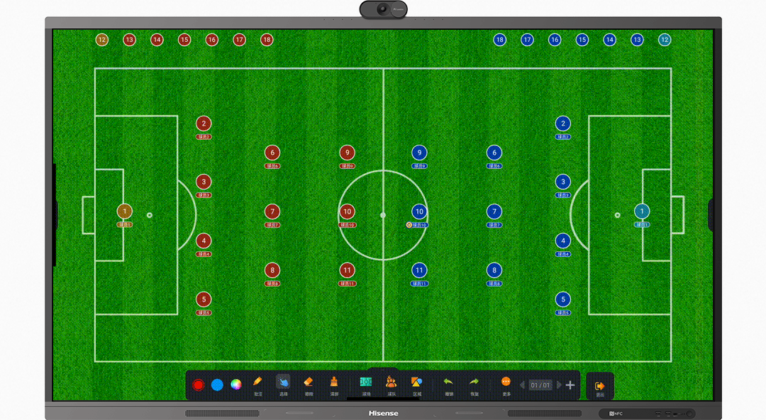 過去,足球教學(xué)或講、評球中使用的多為普通白板產(chǎn)品,使用時不僅需要提前在白板上畫好場地示意,更需要反復(fù)擦寫,書寫成本較高。而書寫功能之外的賽事回放分析、視頻連線等功能,則需要借助其他設(shè)備進(jìn)行,大大影響著工作效率與便利程度。