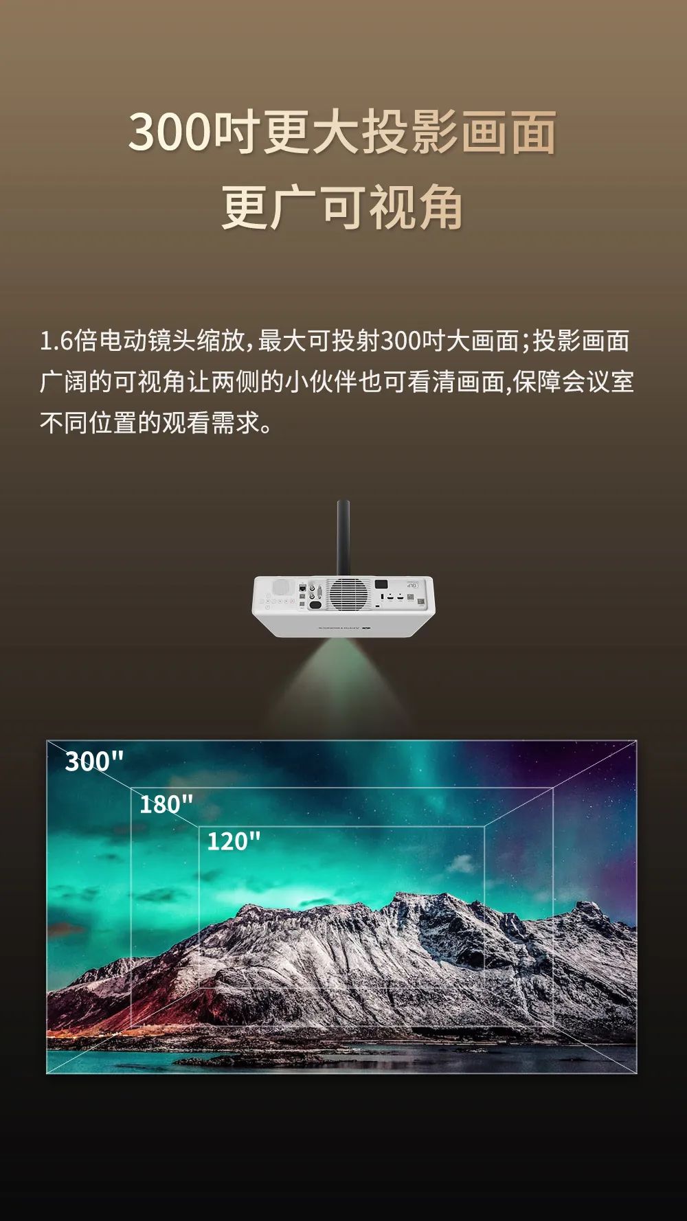 投影機(jī)利用起凸透鏡成像原理,擅于將小畫(huà)面投影以大畫(huà)面呈現(xiàn)。60吋、100吋、150吋、最大支持300吋。