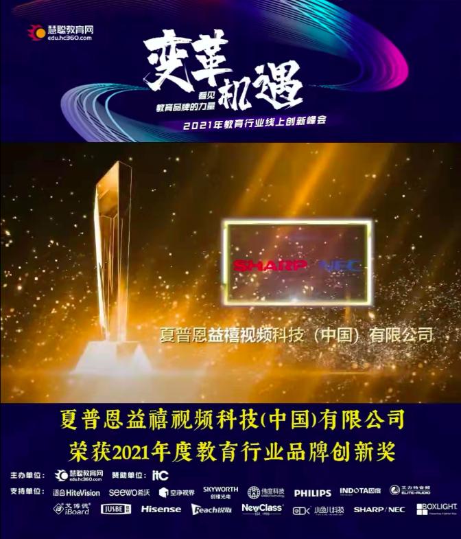 百年大計,教育為本。2021年是中國教育變革重要的一年,教育“十四五”規(guī)劃提出加快建設(shè)高質(zhì)量教育體系,“雙減”政策推動素質(zhì)教育發(fā)展。在此背景下,慧聰教育網(wǎng)主辦以“變革·機(jī)遇 看見教育品牌的力量”為主題的2021年教育行業(yè)線上創(chuàng)新峰會,夏普恩益禧視頻科技(中國)有限公司一舉斬獲2021年度教育行業(yè)品牌創(chuàng)新獎。