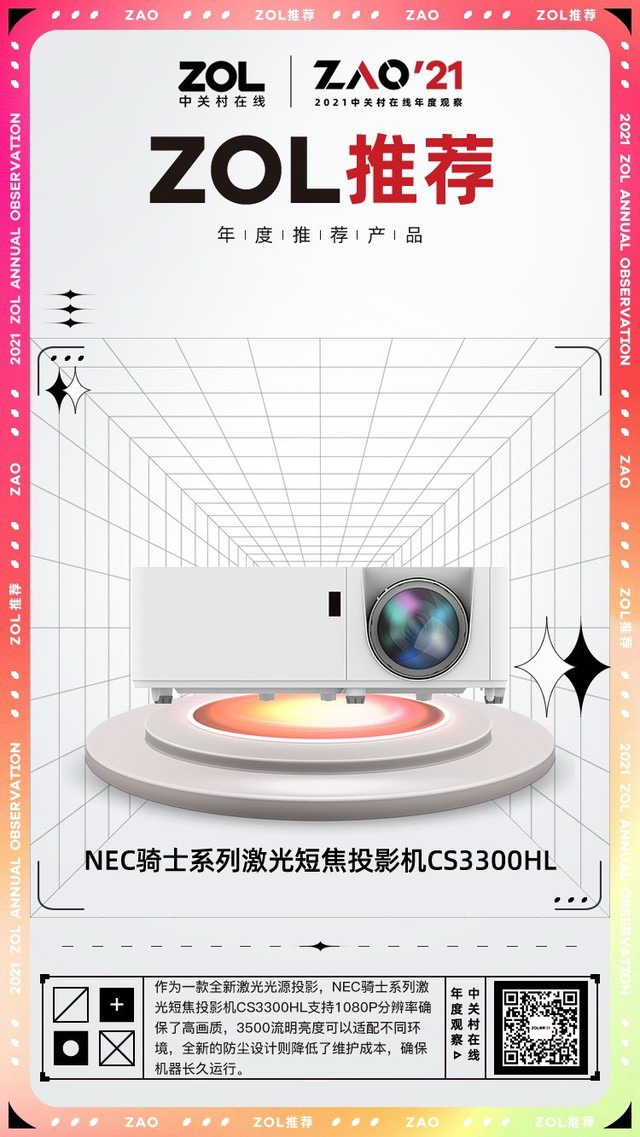 作為中國領(lǐng)先的科技門戶,中關(guān)村在線(ZOL)的年度評獎堪稱行業(yè)風(fēng)向標(biāo),唯有真正具備實(shí)力的企業(yè)和產(chǎn)品方能獲獎。其中,“ZOL推薦”年度推薦產(chǎn)品更是經(jīng)過中關(guān)村在線專業(yè)編輯評測認(rèn)證,評選出兼顧過硬品質(zhì)與出色體驗(yàn)的至臻好物。NEC騎士系列激光短焦投影機(jī)CS3300HL能夠榮獲2021年“ZOL推薦”年度推薦產(chǎn)品殊榮,可見實(shí)力非凡。